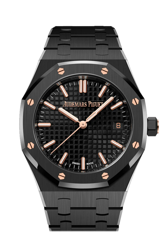 Introducing the Audemars Piguet Royal Oak 34 Black Dial Black Ceramic Watch (77350CE.OO.1266CE.01.A). This sophisticated timepiece features a sleek black dial housed in a stylish black ceramic case and bracelet. Combining modern design with durable materials, it embodies understated elegance and precision craftsmanship. Perfect for those who appreciate minimalist luxury and contemporary aesthetics.