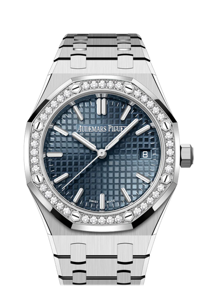 Introducing the Audemars Piguet Royal Oak 34 Bleu Nuit Nuage 50° Dial Stainless Steel Watch (77451ST.ZZ.1361ST.02). This elegant timepiece features a distinctive bleu nuit nuage 50° dial housed in a durable stainless steel case. Combining classic Royal Oak design with contemporary sophistication, it is ideal for those who appreciate luxury and precision craftsmanship.