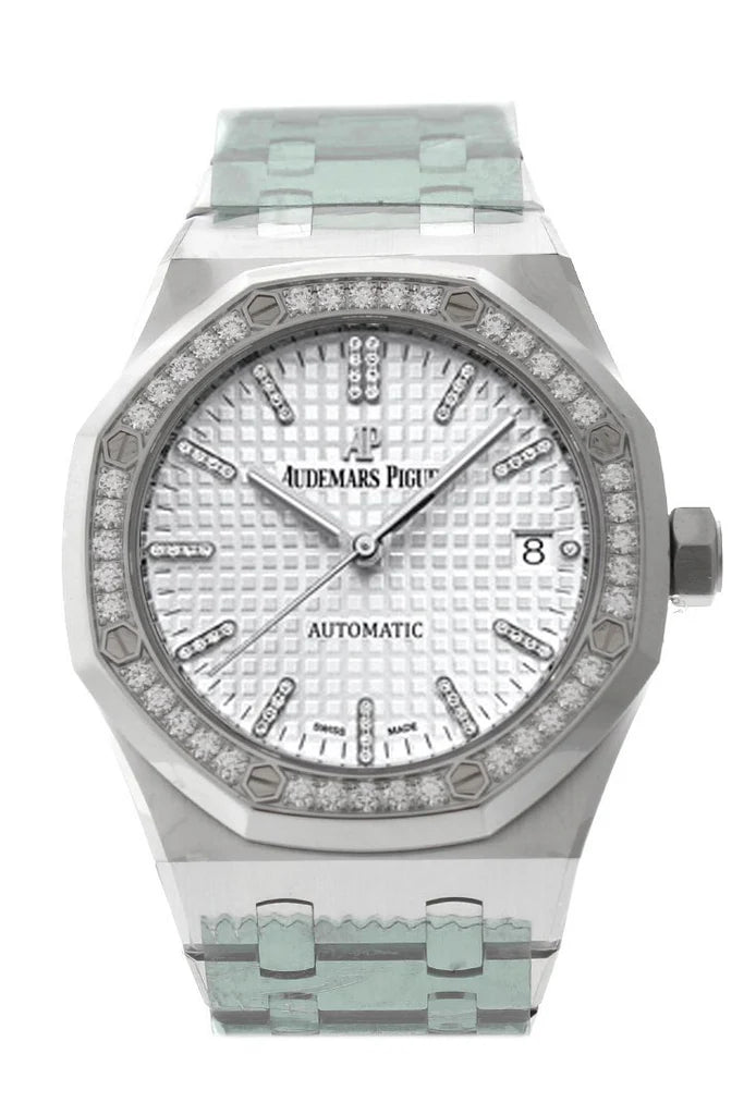 Discover the perfect blend of elegance and durability with the Audemars Piguet Royal Oak 37mm women's watch. Crafted from robust titanium and platinum, this exquisite timepiece features a rhodium-toned dial adorned with sparkling diamonds and the iconic "Grande Tapisserie" pattern. The combination of materials ensures both lightweight comfort and sophisticated style. Powered by an automatic movement, the watch delivers precise timekeeping with Audemars Piguet's renowned craftsmanship. Elevate your collection with the Audemars Piguet Royal Oak 37mm, a stunning symbol of luxury and refined design.