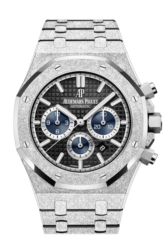 Powered by a precise automatic movement, this Royal Oak chronograph delivers exceptional accuracy and reliability. Whether worn for formal occasions or everyday wear, the Audemars Piguet Royal Oak 41 Chronograph White Gold Black Dial Watch is sure to make a statement on your wrist.