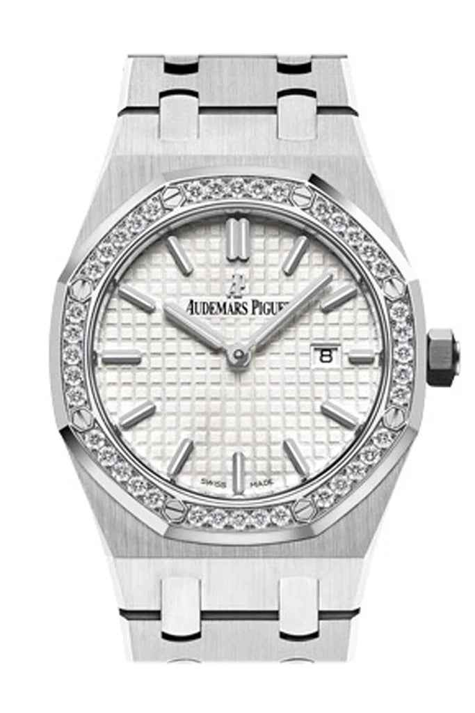 Discover sophistication with the Audemars Piguet Royal Oak Lady 33mm. Featuring a radiant silver dial adorned with diamonds, set in a striking combination of stainless steel and gold, this timepiece exudes elegance and luxury. Designed for the modern woman who values both style and substance, it offers Swiss precision and impeccable craftsmanship. Elevate your wrist with this exquisite blend of beauty and functionality.