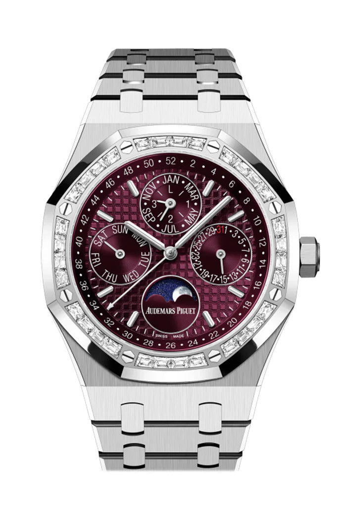 Indulge in Radiant Sophistication: Audemars Piguet Royal Oak Purple Dial White Gold Diamond Bezel Watch (26598BC.ZZ.1220BC.01). A fusion of opulence and precision, this exquisite timepiece features a striking purple dial adorned with a diamond bezel, radiating elegance with every glance. Crafted from white gold, its luxurious silhouette exudes refinement and glamour. Elevate your style with this captivating statement piece that exquisitely combines haute horology with timeless allure. Discover unparalleled sophistication; shop now.