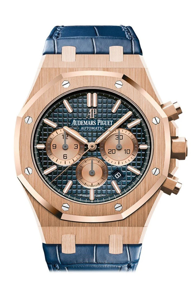 Experience timeless elegance with the Audemars Piguet Royal Oak in rose gold. This distinguished timepiece features a striking blue dial and is complemented by a luxurious blue leather strap, combining sophistication with contemporary style. Perfect for the modern man who values Swiss precision and impeccable craftsmanship, it makes a bold statement of refined taste. Elevate your collection with this exquisite watch, crafted to captivate at every occasion.