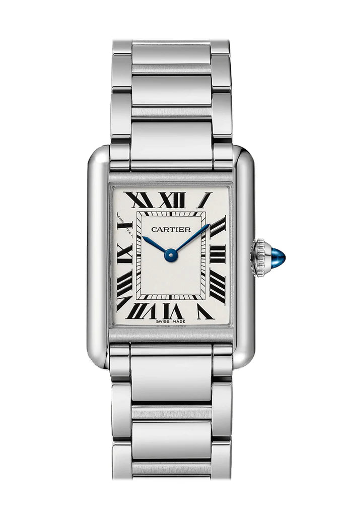 Introducing the Cartier Tank Must Silver Dial Small WSTA0051 - an iconic timepiece that exudes timeless elegance and sophistication. This exquisite watch features a classic silver dial with blue sword-shaped hands and Roman numeral hour markers, capturing the essence of Cartier's signature style. The stainless steel case and bracelet offer durability and a refined aesthetic. With its small size, this watch is perfect for those who prefer a more delicate and feminine timepiece. Elevate your wrist with this iconic Cartier Tank Must, now available for those who appreciate the perfect blend of tradition and modernity.