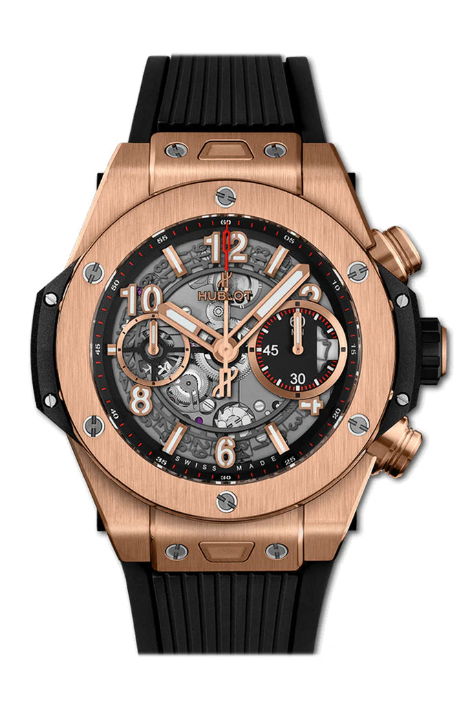 Introducing the Hublot Big Bang Automatic Chronograph Men's 18K King Gold Watch (441.OX.1180.RX): A Fusion of Luxury and Performance. Meticulously crafted, this exemplary timepiece seamlessly blends sophisticated design with cutting-edge technology. Its 18K King Gold case exudes opulence, while the black dial features chronograph sub-dials for precision timing. With a precise automatic movement, this watch offers impeccable timekeeping and reliability. Whether it's a formal event or everyday wear, elevate your style effortlessly with the Hublot Big Bang Automatic Chronograph Men's 18K King Gold Watch, a true symbol of luxury and refinement.