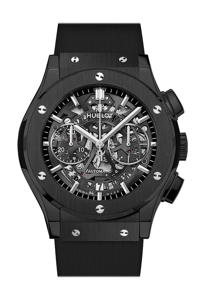 Introducing the Hublot Classic Fusion Aerofusion Chronograph 45mm Men's Watch (525.CM.0170.RX): A Fusion of Innovation and Style. Meticulously crafted, this exemplary timepiece seamlessly blends avant-garde design with classic sophistication. Its ceramic case exudes modern luxury, while the black dial features chronograph sub-dials for added functionality. With a precise automatic movement, this watch offers impeccable timekeeping and reliability. Whether it's a formal event or everyday wear, elevate your style effortlessly with the Hublot Classic Fusion Aerofusion Chronograph 45mm Men's Watch, a true symbol of refinement and innovation.