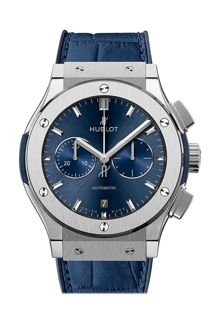 Introducing the Hublot Classic Fusion Chronograph Automatic Men's Watch (541.NX.7170.LR): A Fusion of Elegance and Precision. Meticulously crafted, this exemplary timepiece seamlessly blends classic design with modern functionality. Its titanium case exudes understated luxury, while the sleek black dial features chronograph sub-dials for added versatility. With a precise automatic movement, this watch offers impeccable timekeeping and reliability. Whether it's a formal occasion or everyday wear, elevate your style effortlessly with the Hublot Classic Fusion Chronograph Automatic Men's Watch, a true symbol of refinement and sophistication.
