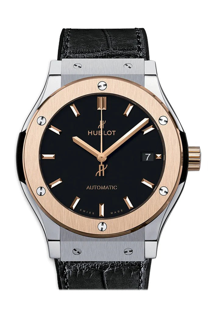 Introducing the Hublot Classic Fusion Mat Black Dial Automatic Men's Watch (542.NO.1181.LR): A Fusion of Timeless Style and Modern Sophistication. Meticulously crafted, this exemplary timepiece seamlessly blends classic design with contemporary flair. Its black ceramic case exudes understated elegance, while the matte black dial adds a touch of refinement. With a precise automatic movement, this watch offers impeccable timekeeping and reliability. Whether it's a formal event or everyday wear, elevate your style effortlessly with the Hublot Classic Fusion Mat Black Dial Automatic Men's Watch, a true symbol of versatility and refinement.