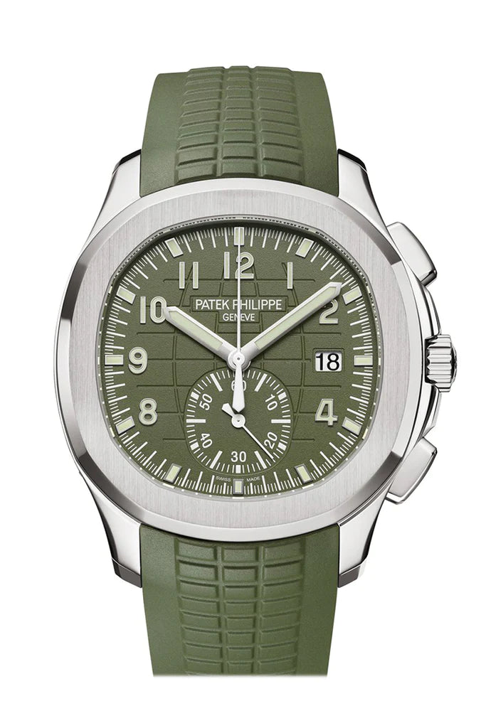 Introducing the epitome of luxury: the Patek Philippe Aquanaut Men's Watch (5968G-010). Meticulously crafted with precision and sophistication, this timepiece exudes timeless elegance and style. Featuring a sleek green dial and a luxurious white gold case, it seamlessly combines function with fashion. Elevate your wristwear collection with the pinnacle of horological excellence from Patek Philippe.