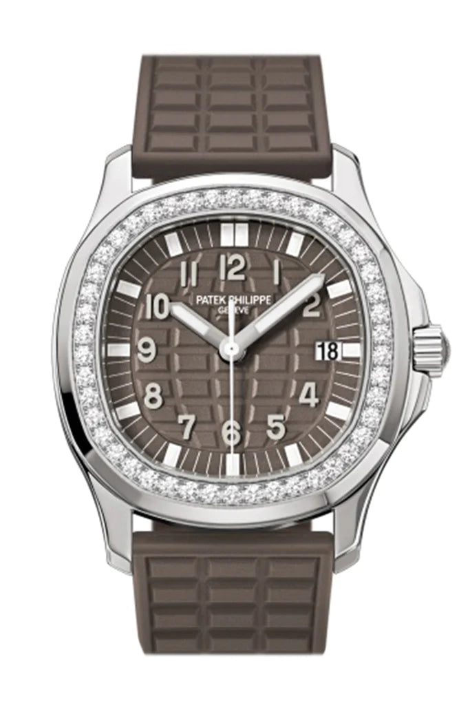 Introducing elegance in motion: the Patek Philippe Aquanaut Quartz Diamond Brown Dial Ladies Watch (5067A-023). Crafted with precision and adorned with exquisite diamonds, this timepiece exudes sophistication and style. Featuring a captivating brown dial and a sleek stainless steel case, it seamlessly blends luxury with functionality. Elevate your wristwear collection with the epitome of horological excellence from Patek Philippe.