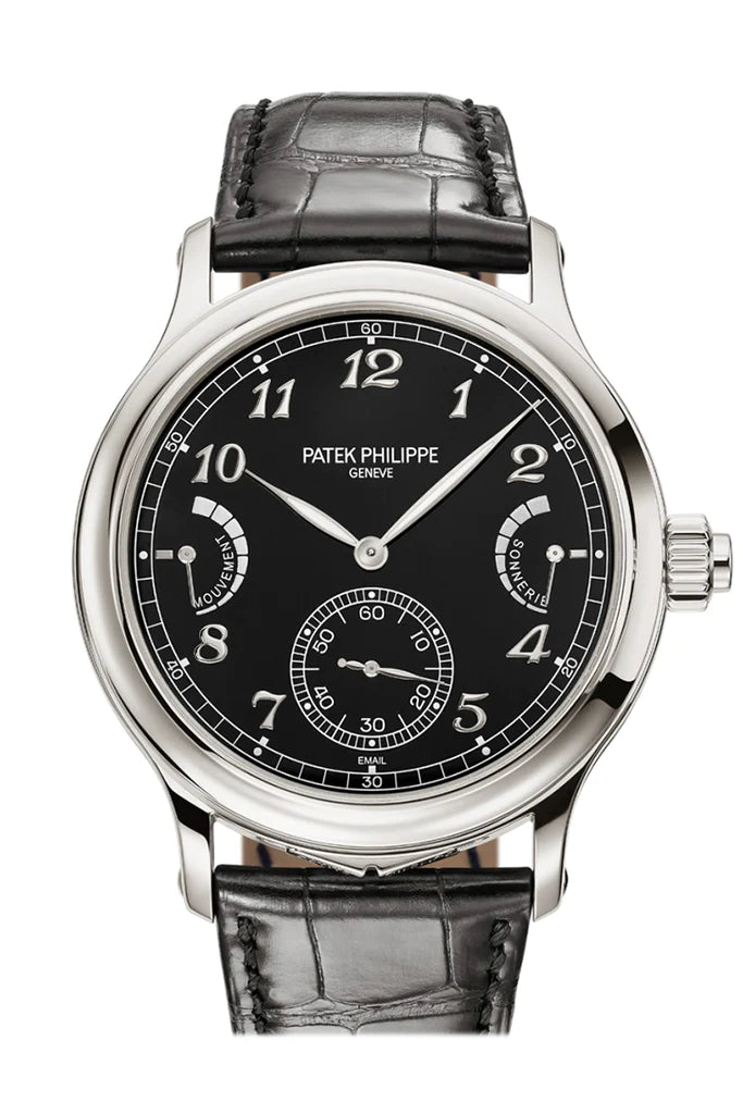 Elevate your wristwear to new heights of sophistication with the Patek Philippe Grand Complications Black Enamel Dial Watch (6301P-001). Meticulously crafted with precision and elegance, this timepiece features a striking black enamel dial housed in a luxurious platinum case. With its intricate complications and timeless design, this watch exudes luxury and refinement. Make a statement of unparalleled elegance with Patek Philippe.