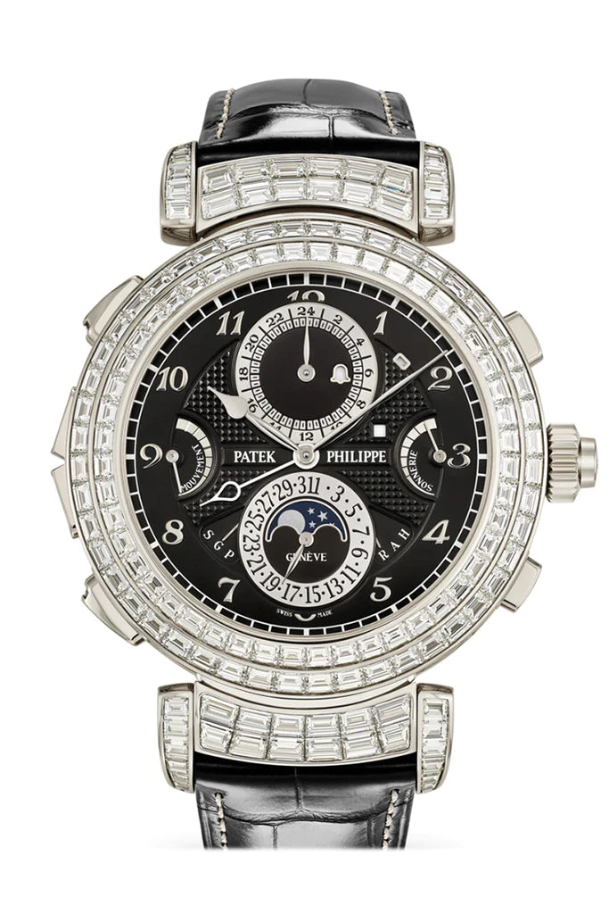 Experience unparalleled sophistication with the Patek Philippe Grand Complications Black Opaline Dial Watch (6300/400G-001). Meticulously crafted with precision and elegance, this timepiece features a captivating black opaline dial encased in luxurious 18k white gold. With its intricate complications and timeless design, this watch is the epitome of horological excellence. Elevate your wristwear collection with the pinnacle of luxury from Patek Philippe.