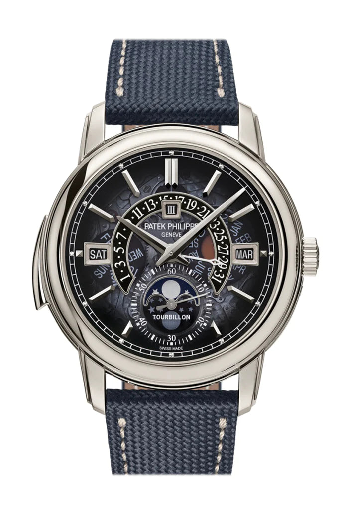 Indulge in the pinnacle of horological craftsmanship with the Patek Philippe Grand Complications Blue Dial Watch (5316/50P-001). Exquisitely crafted in platinum, this timepiece features a mesmerizing blue dial adorned with intricate complications, showcasing unparalleled precision and sophistication. Elevate your wristwear to new heights of elegance and style with this masterpiece from Patek Philippe.