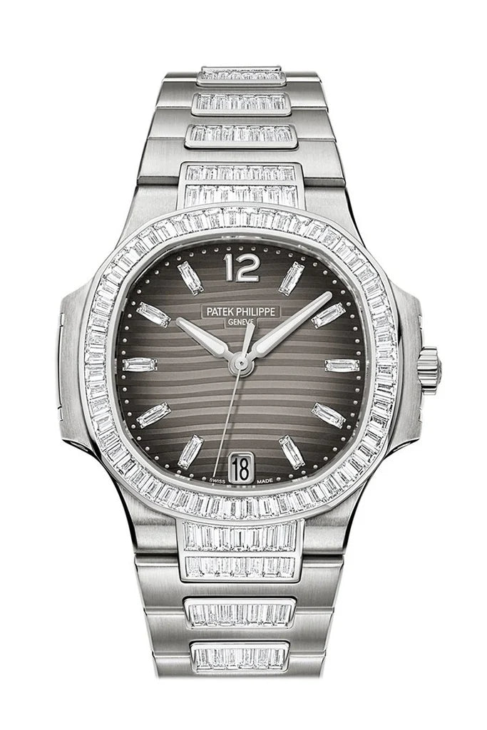 Introducing the Patek Philippe Nautilus Charcoal Gray Ladies Watch 7014/1G-001 - a pinnacle of elegance and luxury. This exquisite timepiece features a mesmerizing charcoal gray dial adorned with luminescent hands and hour markers, exuding sophistication and refinement. The 18k white gold case and integrated bracelet offer both durability and timeless style. Designed for the modern woman with discerning taste, this watch seamlessly blends elegance with functionality. Elevate your wrist with the exquisite beauty of the Patek Philippe Nautilus Charcoal Gray Ladies Watch 7014/1G-001.