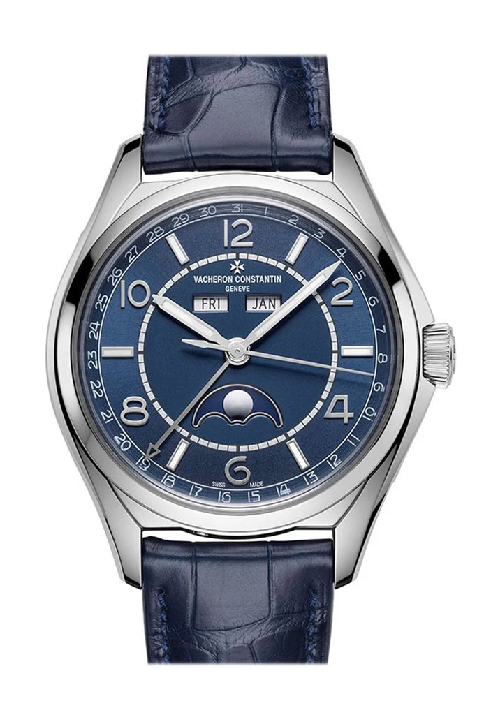 Introducing the Vacheron Constantin Fifty-Six Complete Calendar Automatic Blue Dial Men's Watch 4000E/000A-B548 - a fusion of classic elegance and contemporary functionality. This exquisite timepiece features a captivating blue dial with day, date, month, and moonphase complications, offering both practicality and sophistication. The polished stainless steel case adds a modern touch, while the brown alligator leather strap provides comfort and style. Powered by a precise automatic movement, the Fifty-Six 4000E/000A-B548 ensures accurate and reliable timekeeping. Elevate your wrist with this iconic timepiece, now available for those who appreciate the perfect blend of tradition and innovation.