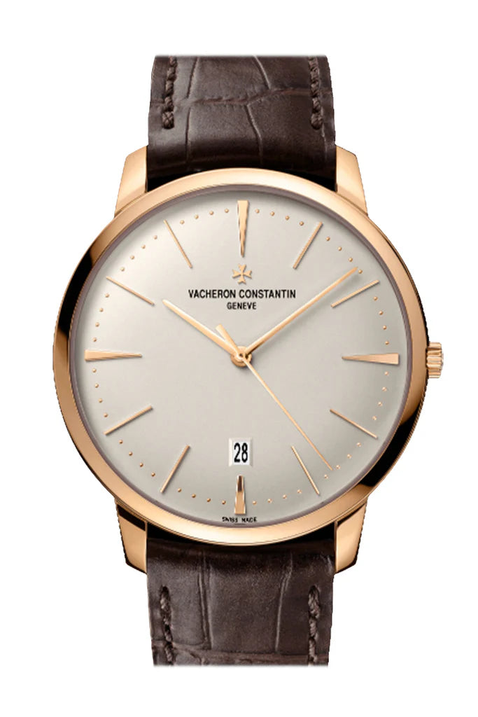 Introducing the Vacheron Constantin Patrimony Silver Dial Men's Watch 85180/000R-9248 - a paragon of timeless elegance and impeccable craftsmanship. This distinguished timepiece features a sophisticated silver dial with minimalist hour markers and sleek, slender hands, encapsulating refined simplicity. The polished 18k rose gold case exudes luxury, while the brown alligator leather strap ensures both comfort and sophistication. Powered by a precise Swiss automatic movement, the Patrimony 85180/000R-9248 guarantees accurate and reliable timekeeping. Elevate your wrist with this iconic timepiece, now available for those who appreciate the perfect harmony of traditional craftsmanship and contemporary design.